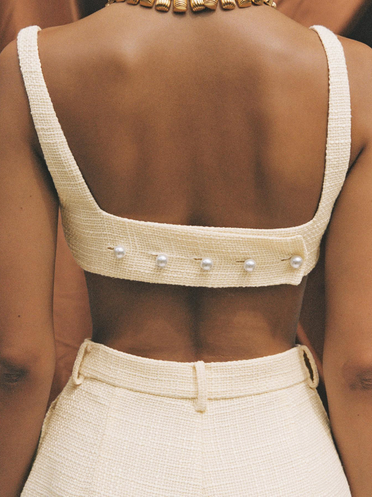 Tweed Backless Plain Shorts Set