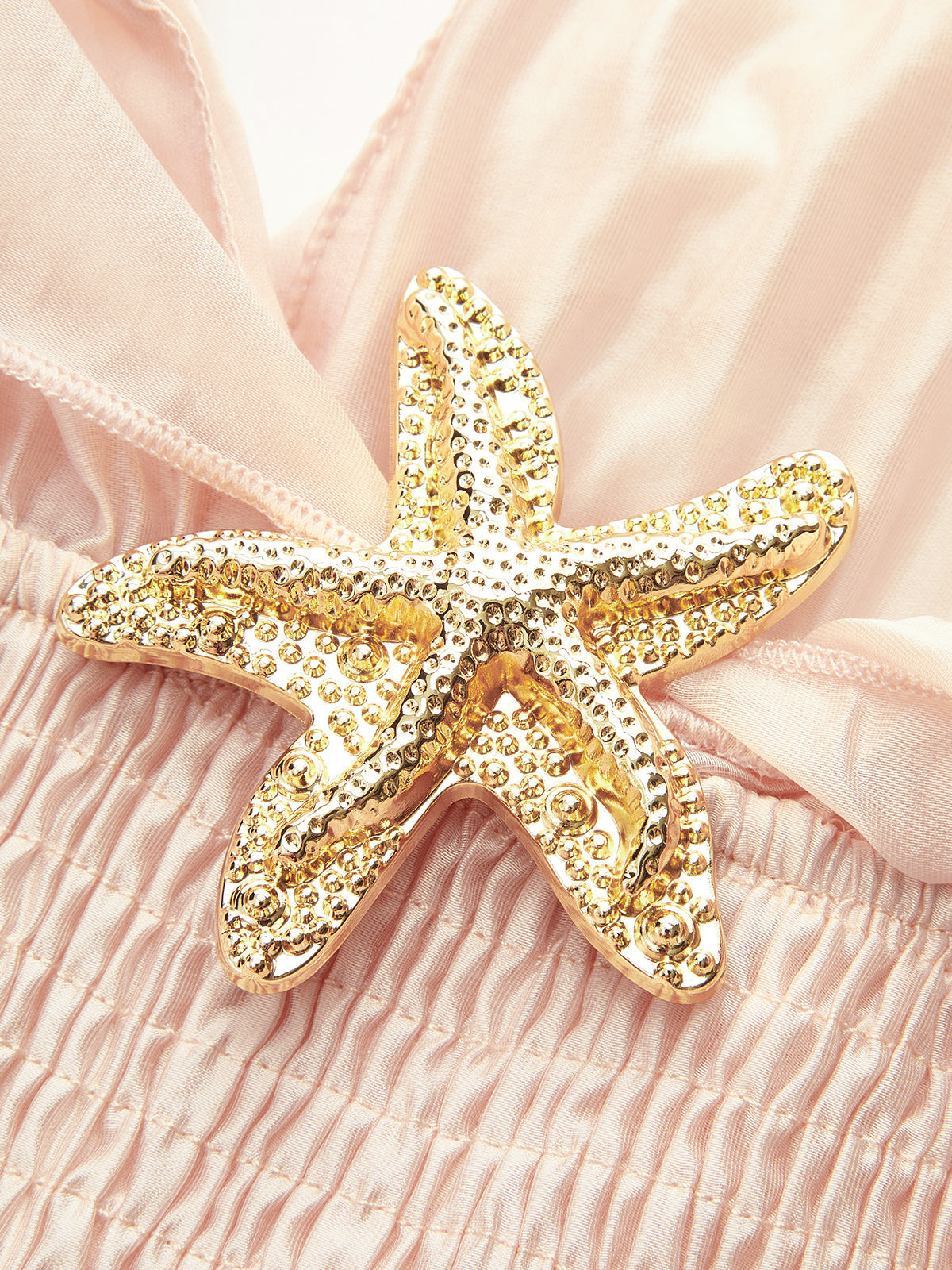 Semi-Sheer Ruffled Metal Decor Waist-Cinching Top