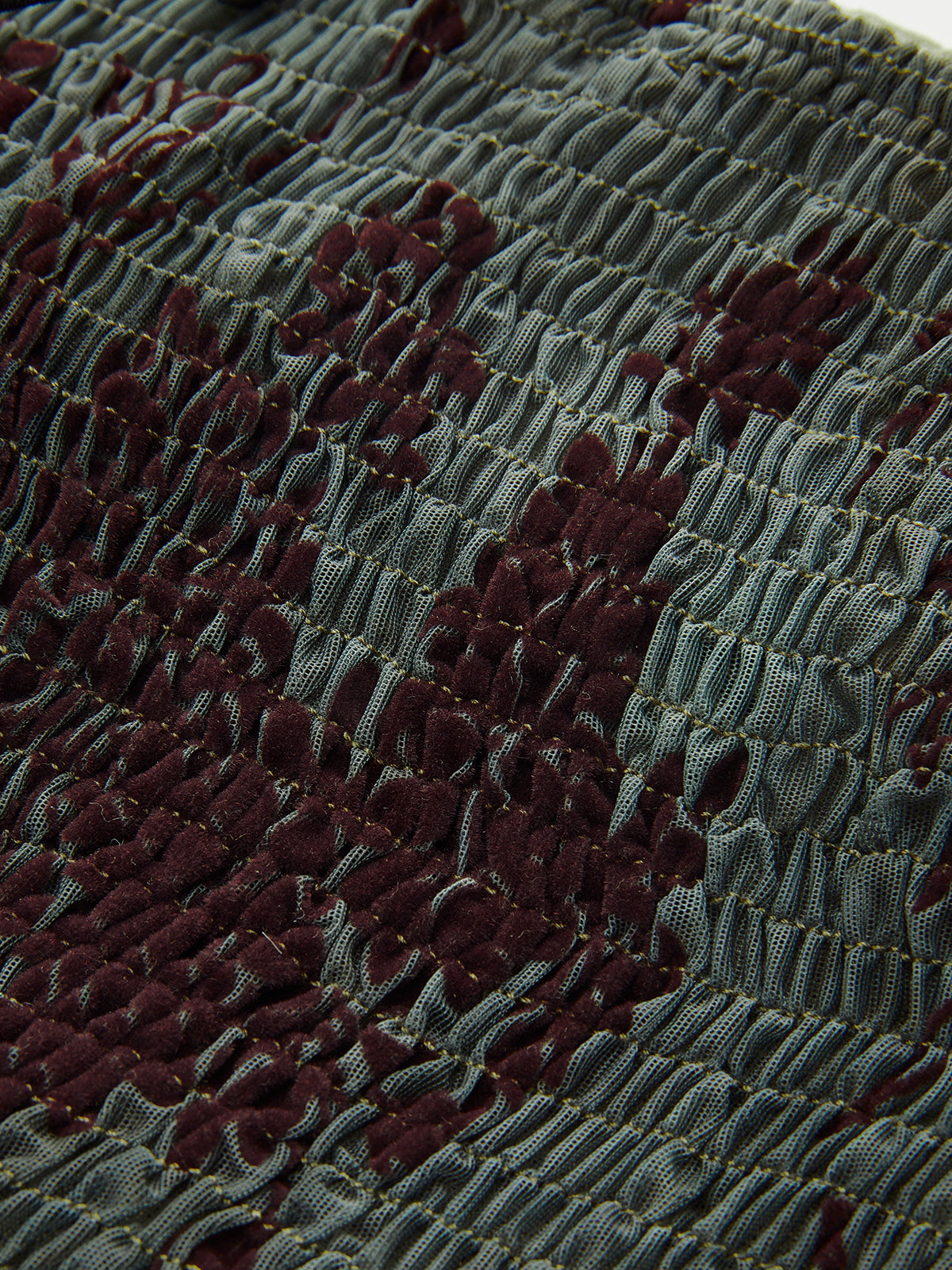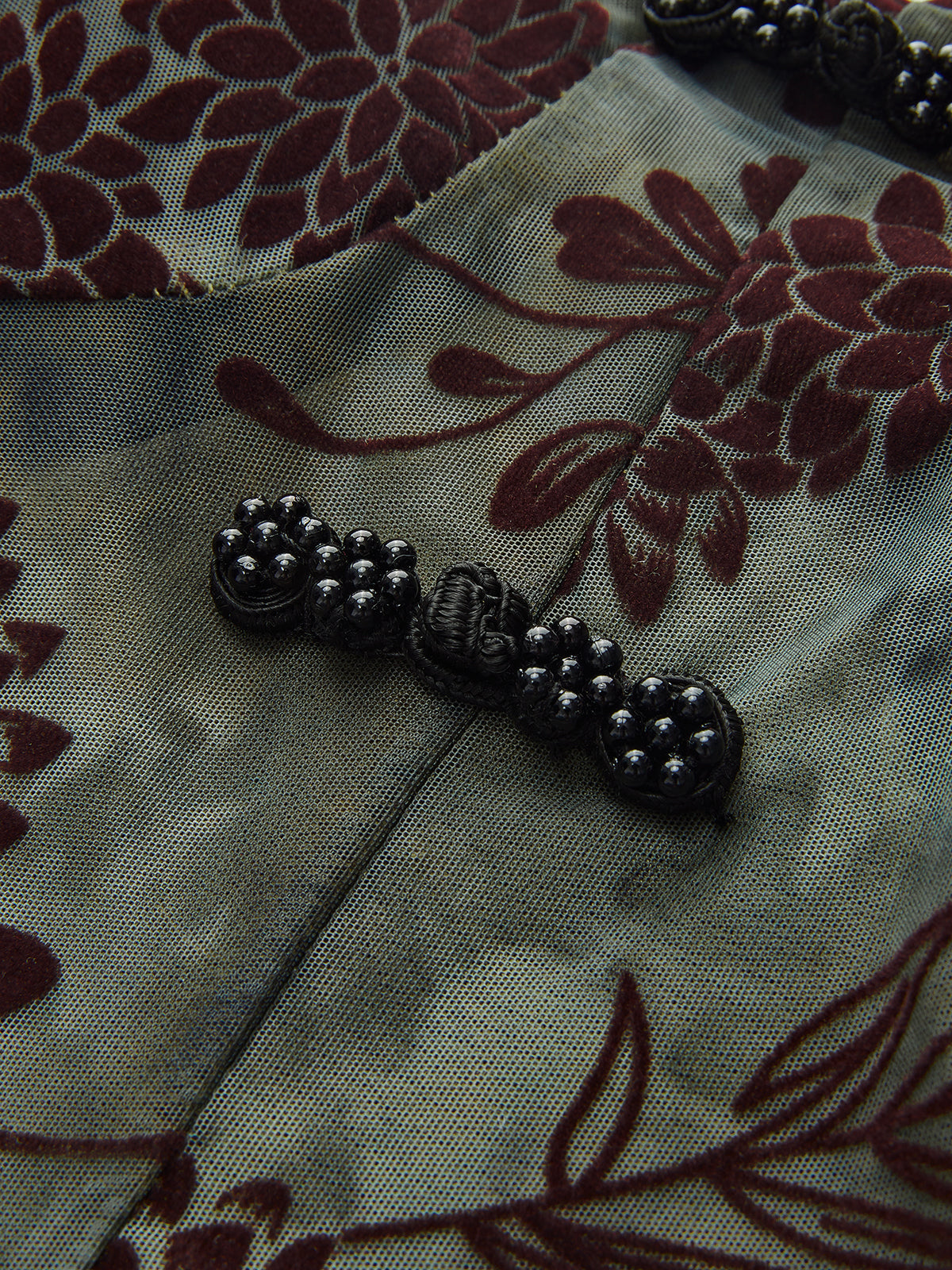 Semi-Sheer Button Detail Velvet Floral Cami Top
