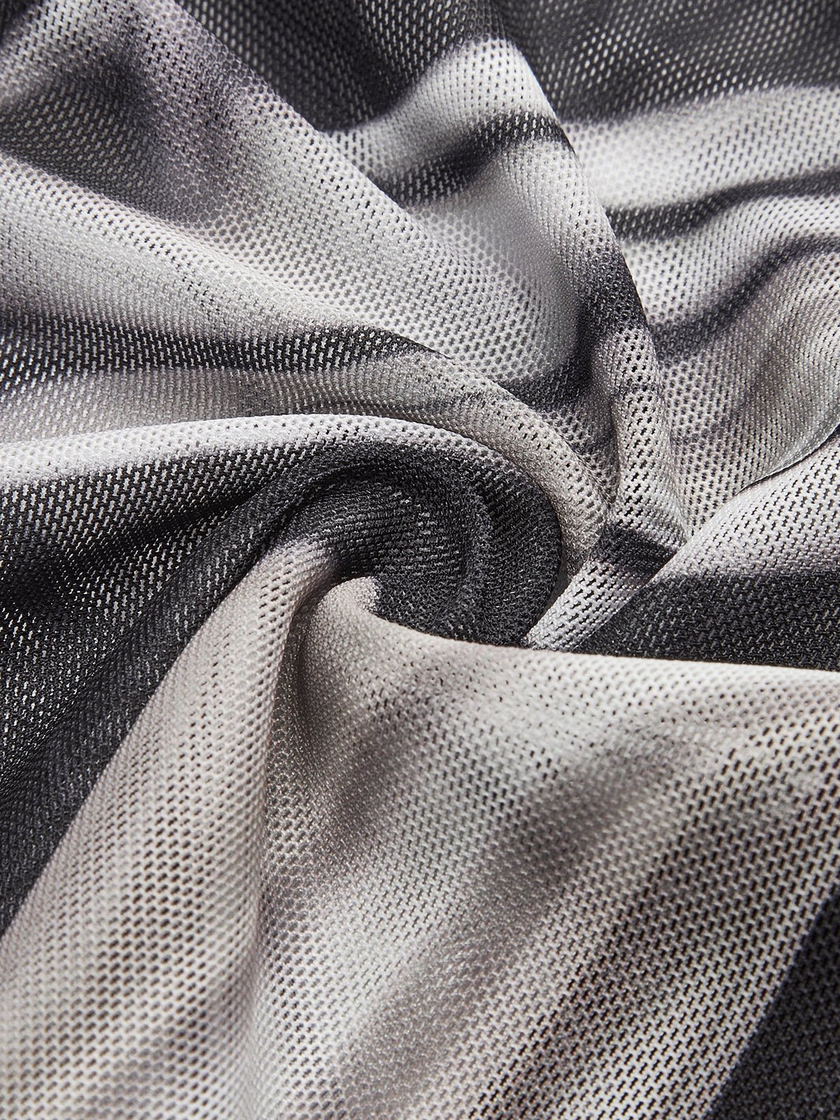 Semi-Sheer Geometric Printed Mesh Jersey Top