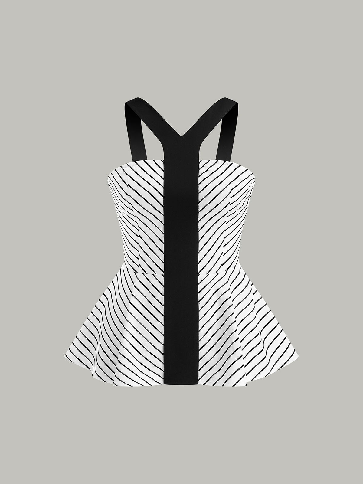 Striped Peplum Top with Contrast Straps